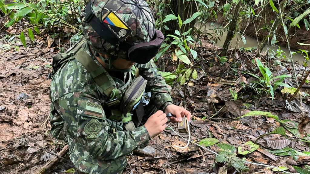 En el sur del país, operaciones militares en zonas rurales de Caquetá y Putumayo dejaron como resultado la ubicación y neutralización de explosivos, así como en el desmantelamiento de un campamento ilegal, en acciones ejecutadas por unidades del Ejército Nacional adscritas a la Sexta División.Durante labores de control territorial en el eje Unión Peneya–Montañita, en el departamento de Caquetá, tropas de la Décima Segunda Brigada localizaron un depósito ilegal de explosivos oculto en una zona boscosa. El hallazgo se produjo a corta distancia de una instalación militar y a unos 600 metros del casco urbano del municipio de La Unión Peneya, en un entorno de tránsito comunitario.En el punto fueron encontrados ocho artefactos explosivos improvisados con sistema de activación por presión. Las verificaciones iniciales permitieron establecer que el material estaría asociado a la estructura ilegal Rodrigo Cadete, según información recopilada en el área.Artefactos hallados. Foto:CortesíaTras la localización, las unidades aplicaron los protocolos de seguridad, delimitaron el perímetro y solicitaron apoyo especializado. El grupo EXDE efectuó la neutralización y destrucción controlada de los artefactos, con el fin de eliminar el riesgo en la zona intervenida y asegurar el entorno cercano.De manera paralela, en el departamento de Putumayo, tropas de la Fuerza de Despliegue Rápido N.° 6 identificaron un área campamentaria en la vereda Villa Nueva del Yurilla, jurisdicción del municipio de Puerto Guzmán. El sitio, de aproximadamente 400 metros, presentaba capacidad para entre 140 y 160 personas y una permanencia estimada de varios días, de acuerdo con las condiciones observadas.En la inspección del lugar se encontraron cinco artefactos explosivos tipo MAP instalados alrededor de una toma de agua ubicada al final del campamento. La disposición de estos elementos representaba un riesgo para quienes transitan o utilizan el recurso hídrico en el sector, así como para las unidades desplegadas.Un grupo de soldados que integran una de las Fuerzas de Despliegue Rápido. Foto:CortesíaLa vinculación del campamento con la estructura Comandos de Frontera, de la Coordinadora Nacional Ejército Bolivariano, fue establecida a partir de elementos materiales recolectados en el terreno y de los trillos de tránsito identificados en sentidos oriente–occidente. Posteriormente, el grupo EXDE realizó la verificación técnica y la destrucción controlada de los explosivos tipo MAP hallados en el área.Desde la Sexta División se reiteró a la población la importancia de reportar oportunamente la presencia de objetos o actividades irregulares a través de los canales institucionales, como parte de las acciones de prevención y seguridad en las zonas rurales de Caquetá y Putumayo.Redacción JusticiaJusticia@eltiempo.comMás noticias de Justcia: