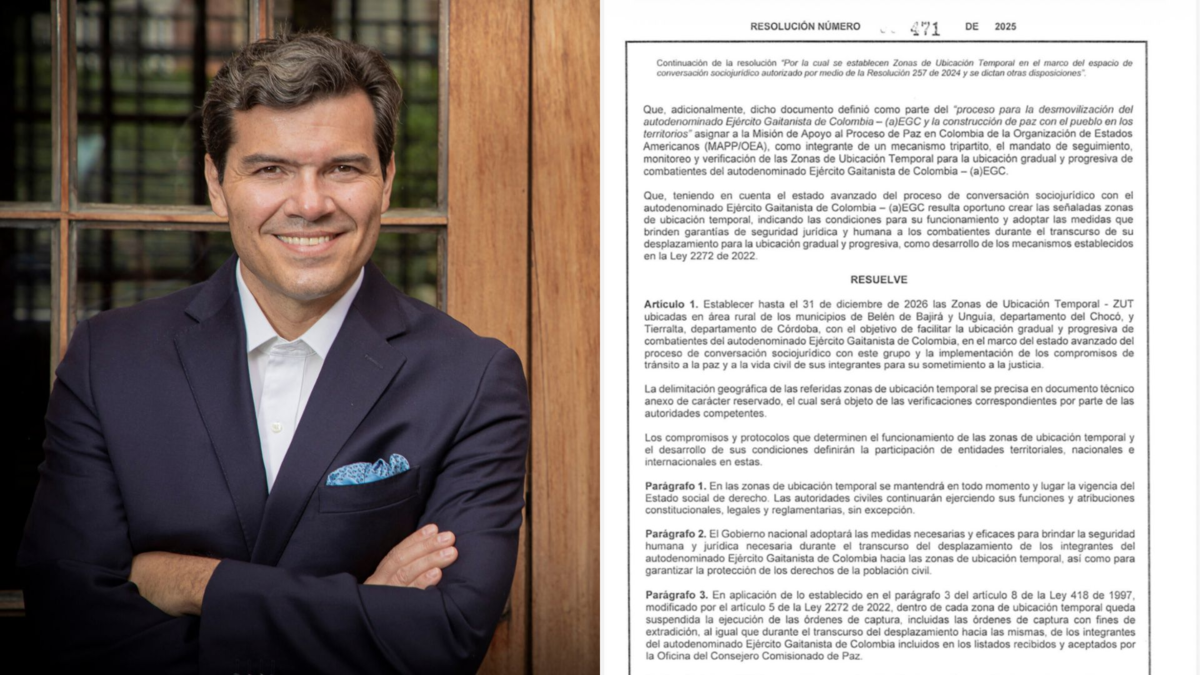 El exabogado del presidente Gustavo Petro demandó ante el Consejo de Estado la resolución con la que el Gobierno, en diciembre pasado y como ofrenda en las negociaciones que sostiene con el ‘clan del Golfo’ en Catar, creó las Zonas de Ubicación Temporal (ZUT). La demanda fue admitida por el alto tribunal el viernes 22 de enero y solicita decretar la suspensión temporal mientras se decide tumbar el decreto, que propone tres lugares para replegar a miembros de este grupo, que supera los 8.000 hombres.La demanda se sustenta en que este beneficio, que vendría acompañado de la suspensión de órdenes de captura de algunos de los ilegales designados como negociadores, no está apegado al andamiaje jurídico de la Ley de ‘paz total’ que aprobó el Congreso y fue salvada avalada parcialmente por la Corte Constitucional.El alto tribunal tumbó las facultades del Gobierno para definir los términos generales del sometimiento a la justicia de las “Estructuras Armadas Organizadas de Crimen de Alto Impacto” y reiteró que esta es una función del Legislativo. Para darle piso jurídico a las negociaciones que tiene con el ‘Clan’ y bandas criminales en Medellín y Barranquilla, el exministro de Justicia radicó el polémico proyecto de Ley de Sometimiento, que le entrega gabelas a capos y que, por su impopularidad, está a punto de hundirse en la Comisión Primera de Cámara. Sin este marco normativo, según la demanda ante el Consejo de Estado, no se podría disponer de Zonas de Ubicación Temporal (ZUT), en donde se les garantice un trato preferencial. Lo acordado en Doha habla de unos territorios en Chocó y Córdoba, dos departamentos que además han sido epicentro de su acción criminal, controlados a sangre y fuego por el ‘Clan’. Los críticos de la resolución hablan de una especie de zona de distensión o Caguán —apelando a la misma práctica en las conversaciones de paz con las extintas Farc y el gobierno de Andrés Pastrana— que no tiene el andamiaje jurídico para legitimarla.De acuerdo con la demanda, se está violando el artículo 66 de la Constitución, que establece que no puede haber justicia alternativa para estos grupos, cuyo desarme se debe basar en el sometimiento. Noticia en desarrollo…
