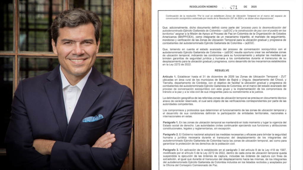Es abiertamente ilegal. Así calificó Mauricio Pava, el exabogado del presidente Gustavo Petro, la resolución con la que el Gobierno creó tres zonas de ubicación temporal para el ‘clan del Golfo’, en Chocó y Córdoba, territorios donde ejercen una fuerte influencia criminal.En diálogo con EL TIEMPO, el jurista explicó las razones de la demanda contra este acto administrativo que radicó ante el Consejo de Estado junto con la solicitud de la suspensión provisional. Consejo de Estado. Foto:Jesús BlanquicetAsí mismo, habló sobre los líos jurídicos de los acercamientos de paz con el ‘clan’ y las bandas criminales en Medellín y Barranquilla que, sin una aprobación de una ley de sometimiento, estarían viciados.¿Cuáles son los alegatos que tendrá que estudiar el alto tribunal, teniendo en cuenta que usted además solicita una medida cautelar para suspender los efectos de la resolución?Esto se remonta a 2022, cuando la política de paz total del Gobierno nacional empieza a transitar por lo que hoy conoce el país. La Corte Constitucional emitió la sentencia C-525 de 2023 y, básicamente, le dijo al Gobierno: le acepto la paz total, pero condicionada a ciertos elementos.El primero es que las zonas de ubicación temporal, por ejemplo, solo podían existir frente a grupos criminales siempre y cuando hubiera una ley de sometimiento, un marco jurídico para bandas criminales de alto impacto, y además que se produjeran en el momento en que las conversaciones estuvieran muy avanzadas.Pues bien, el acto administrativo que estamos demandando —la Resolución 471, expedida el 22 de diciembre de 2025— pasa por alto esa disposición de la Corte Constitucional.  LEA TAMBIÉN La manera como esto se ha planteado desconoce no solo la decisión de la Corte Constitucional, como cabeza de la rama judicial, sino también el papel del Congreso de la República. Estamos ante una resolución, un acto administrativo, que es inconstitucional y que además resulta profundamente preocupante, porque se trata de zonas y espacios territoriales en Chocó y Córdoba que fueron tomados por la fuerza por el ‘clan del Golfo’.Lo que estamos haciendo es entregarles esos territorios, legalizárselos al ‘clan’, suspendiendo órdenes de captura, incluso órdenes de captura con fines de extradición. Y uno de los aspectos más críticos es quién va a garantizar el voto libre en esas zonas.Por razones de constitucionalidad, de respeto al Estado constitucional de derecho y por lo que el país enfrenta de cara a las jornadas electorales y al desafío democrático, esperamos que el Consejo de Estado, más temprano que tarde, adopte las determinaciones correspondientes.¿Los mismos alegatos jurídicos aplicarían, por ejemplo, para las zonas de ubicación temporal que el Gobierno creó con las disidencias de ‘Calarcá’? ¿Cuáles son las diferencias entre ambos casos?Las negociaciones diferencian los grupos. Hay organizaciones que tienen un pedigrí político, una historia subversiva —diluida, contaminada o dominada hoy por actividades de narcotráfico y otros delitos—, pero con una subyacencia política detrás.Pero hay otras estructuras, como el ‘clan del Golfo’, que son bandas criminales, delincuencia común de alto impacto, sin ningún subyacente político. Esa es una diferencia fundamental, porque frente a los grupos criminales de alto impacto no hay una conversación política: la ley aplicable es la de sometimiento a la justicia.Desde Catar, el Gobierno de Colombia y el autodenominado (a) EGC suscriben nuevos compromisos. Foto:Consejería Comisionada de Paz.La entrega de estos territorios y la legalización de los mismos, en mi concepto, no tiene precedentes en nuestra historia republicana, ni siquiera en épocas como las zonas de despeje del Caguán, que se dieron frente a grupos como las Farc, con una subyacencia política clara.El hecho de que recientemente le hayan dado el estatus de organización terrorista extranjera, ¿cambiaría su categoría de cara a las negociaciones de paz?Yo creo que es aún más grave que se esté conversando con una organización terrorista. La Corte Constitucional le puso límites claros al Gobierno y los sobrepasó.Yo vengo trabajando desde 2022 con mi equipo y con la Fundación Dilo en el tema del sometimiento, rechazando este tipo de propuestas. De hecho, tuve la oportunidad de decirle a Iván Cepeda en ese momento que una mirada así no solo es inconstitucional, sino inconveniente para el país.Y ahora mucho más, sobre todo en un escenario electoral en el que hay un movimiento muy fuerte que aboga por la recuperación del territorio, el orden jurídico y la seguridad, y otro movimiento —que hoy lidera las encuestas con el candidato Iván Cepeda— que plantea una filosofía de acogimiento y un trato casi político a estas bandas criminales. LEA TAMBIÉN Además, el proyecto de ley de sometimiento está congelado en el Congreso y varias entidades —como la Misión de Naciones Unidas y la Defensoría— han pedido incluso que sea retirado por falta de sustento constitucional.Sin la aprobación de esa ley, que radicó el exministro de Justicia Eduardo Montealegre y que generó polémica por las gabelas que ofrecía a capos de bandas criminales, ¿los espacios de diálogo sociojurídico que hoy tiene el Gobierno en ciudades como Barranquilla o Medellín quedarían sin marco normativo?Sí. No tienen un marco normativo ni un marco jurídico. El único marco existente es la legislación expedida hace cuatro o cinco años sobre sometimiento colectivo de bandas criminales, una legislación que estos grupos han rechazado porque lo que proponen es una especie de justicia política, un diálogo político con ellos.Y, a mi modo de ver, con bandas criminales no hay diálogo político: hay una conversación de sometimiento a la justicia, en la que puede existir generosidad en los beneficios. Desde 2022 nosotros no nos oponemos a que haya beneficios, com